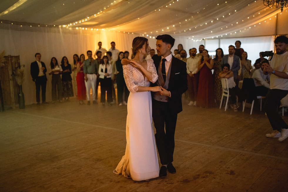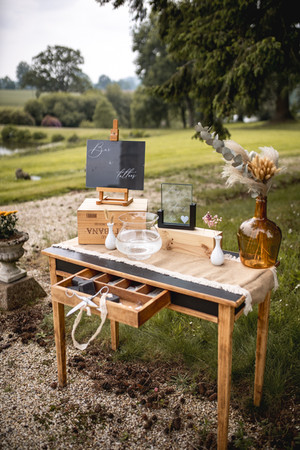 Le couple a échangé ses vœux lors d’une cérémonie laïque dans le jardin, au bord de l’étang, avec une vue imprenable sur le château. C’était un moment rempli d’émotions et de douceur, entourés de leurs familles et amis.